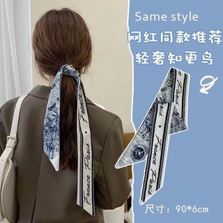 Khăn Choàng Cổ Dài Bằng Lụa Mỏng Họa Tiết Kẻ Sọc Thắt Nơ Dễ Phối Đồ Trang Trí Túi Xách Phong Cách Hàn Quốc
