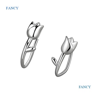 Đôi Khuyên Tai Hình Hoa Tulip Màu Bạc Phong Cách Pháp Cổ Điển Dành Cho Nữ