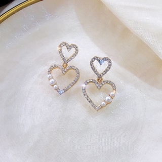 Bông Tai Mạ Bạc 925 Hình Trái Tim Đính Đá Và Ngọc Trai Giả Phong Cách Hàn Quốc