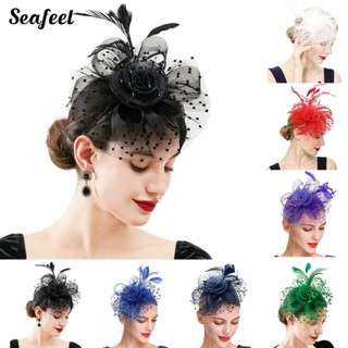 Sf_ Kẹp Tóc Phối Lưới Đính Hoa Lông Vũ Đa Năng Tạo Kiểu Tóc Cô Dâu