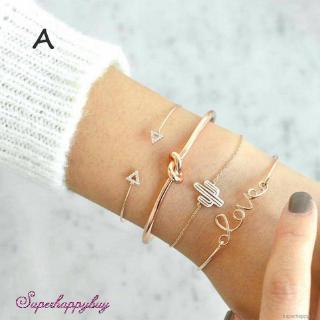 Bộ 4 Vòng Tay Hợp Kim Mạ Vàng/Bạc Kiểu Dáng Khác Nhau Cho Nữ
