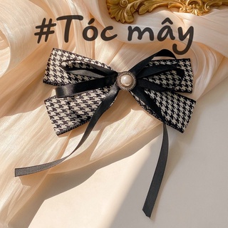 Nơ kẹp tóc caro đen trắng đính đá kèm nơ sang trọng NT518