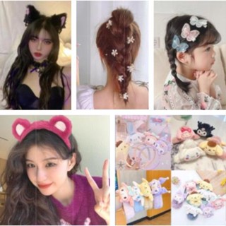 Bộ 2 Dây Đeo Cổ Tay / Tóc Bằng Vải Bông Chống Nước Chống Ẩm Hình Sanrio Melody Kuromi Kitty Dễ Thương
