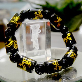 Vòng tay lắc trụ đen khắc hình rồng vàng-Có nhiều cỡ-8ly-10ly-12ly