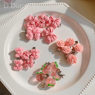 Thẻ Kẹp Tóc Hình Nơ Màu Hồng Đào Phối Hoa Hồng Trắng Phong Cách Nhật Bản Dành Cho Bé Gái
