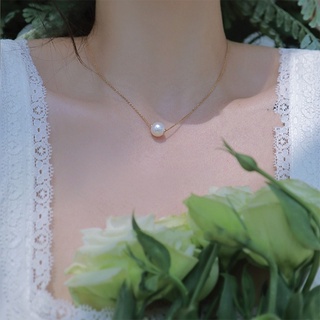 Vòng cổ xích vàng gắn ngọc trai đơn giản cho nữ