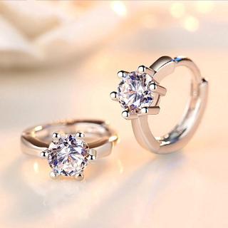 Khuyên tai bạc đính đá zircon tròn thời trang nữ phong cách Hàn Quốc