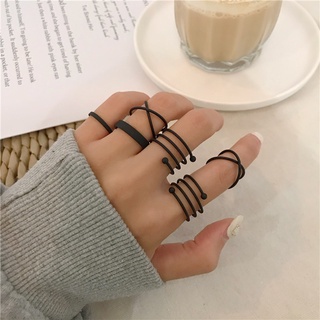 Set 5 Nhẫn Hở Hình Rắn Đen Bằng Kim Loại Sáng Bóng Đơn Giản Có Thể Điều Chỉnh Thời Trang Cho Nam Nữ / Bé Gái / Bạn Bè / Tiệc Tùng