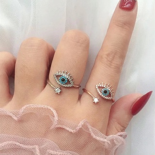 Nhẫn Hở Đính Đá Zircon Hình Mắt Quỷ Có Thể Điều Chỉnh Phong Cách Thổ Nhĩ Kỳ Thời Trang Đơn Giản Cho Nữ