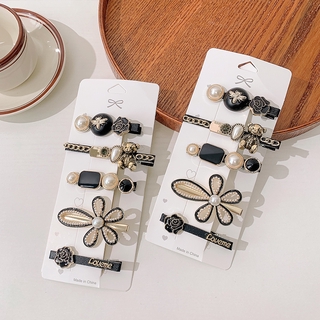 Set 5 kẹp tóc nơ đính ngọc trai nhân tạo phong cách Hàn Quốc dành cho nữ