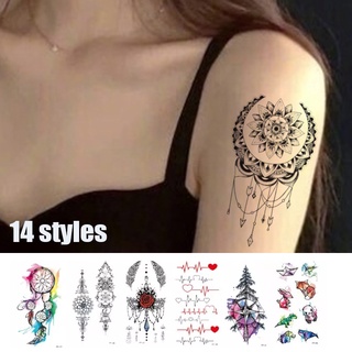 1 Tờ Hình Xăm Dán Tạm Thời Hình Hoa Mandala Màu Đen Quyến Rũ Không Thấm Nước Cho Nam Và Nữ DIY