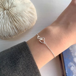 Vòng Tay Khóa Liên Kết Hình Trái Tim Đôi Bằng Thép Không Gỉ Có Thể Điều Chỉnh Phong Cách Ins Hàn Quốc Cho Nữ / Phụ Kiện Trang Sức Quà Tặ