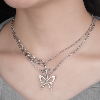 Vòng cổ Hai Lớp Họa Tiết Bươm Bướm Bất Đối Xứng Dày Phong Cách Hip Hop Thời Trang Cho Nữ