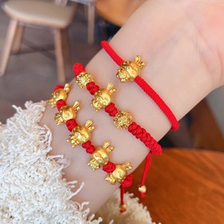 Vòng Tay Dây Đỏ May Mắn Mặt Hình Thỏ May Mắn Phong Cách Trung Hoa Làm Quà Tặng Năm Mới