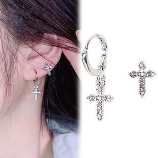 1 Đôi Bông Tai Hình Thánh Giá Đính Đá Zircon Phong Cách Hip Hop Dành Cho Nữ
