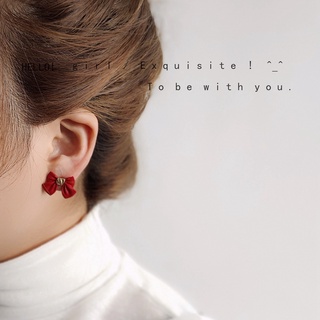 Khuyên tai nữ nơ 2 màu đỏ đen dễ thương NO310