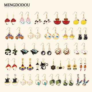 Hoa tai giọt dầu bất đối xứng hoạt hình vui nhộn quốc triều phong cách gấu trúc động vật hoa tai trái cây hoa tai lá nấm dễ thương