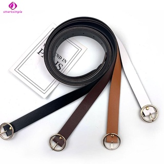 Thắt Lưng Da Màu Trơn Khóa Tròn / Vuông Bằng Hợp Kim Co Giãn Thời Trang Cho Nam Và Nữ J7P9