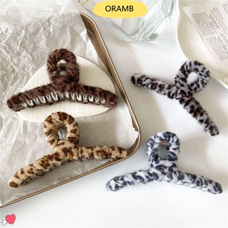 Kẹp tóc dạng lược họa tiết da báo giả bằng vải lông nhiều màu thời trang thu đông cho nữ
