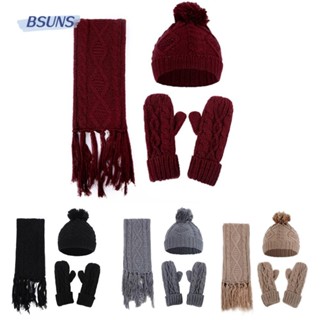 BSUNS Set Mũ beanie Kèm Khăn Choàng Cổ Và Găng Tay Chống Gió Cho Nam Và Nữ
