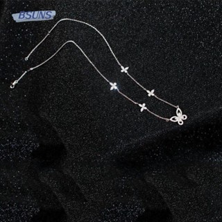 BSUNS Vòng cổ Mạ Bạc Mặt Bướm Đính Đá Zircon Nhiều Màu Sắc