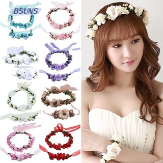BSUNS Vòng Hoa Hướng Dương Màu Sắc Trắng Bện Trang Trí Tóc Cho Cô Dâu
