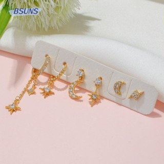 BSUNS Đôi Bông Tai Dáng Dài Hình Mặt Trăng Ngôi Sao Đính Đá Thời Trang Cho