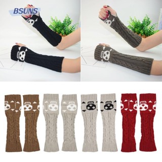 BSUNS Găng Tay Len Dài Hở Ngón Hình Đầu Lâu Halloween