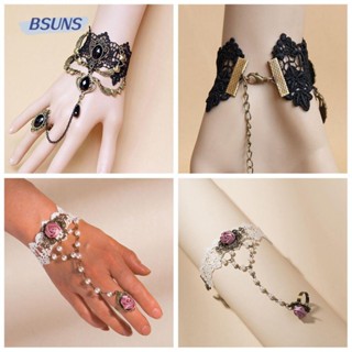 Vòng Tay Ren Hoa Màu Đen Kèm Nhẫn Cho Nữ