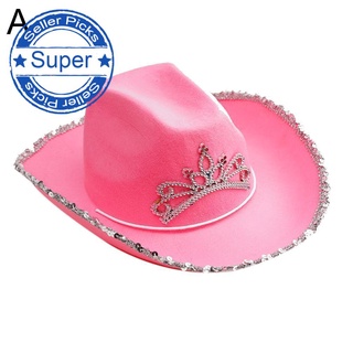 Mũ Cao Bồi Đính Kim Sa Hình Vương Miện Hồng