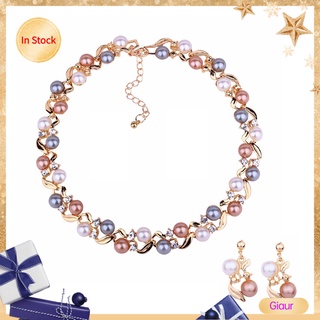 Bộ vòng cổ và bông tai đính ngọc trai nhân tạo quý phái sang trọng tinh tế