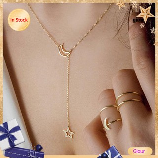 Vòng cổ hợp kim hình ngôi sao mặt trăng đính đá nhân tạo độc đáo thời trang