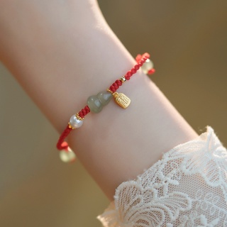 Vòng Tay Dây Đỏ Đính Ngọc Trai Giả Mừng Năm Mới Cho Nữ