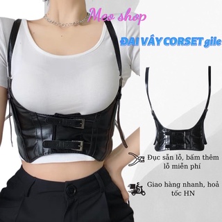 Đai váy corset có quai đeo gile ĐV035- Thắt lưng nịt eo bằng da đen phong cách steampunk cá tính Đai nịt áo váy cosplay