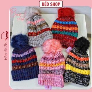 Mũ len kẻ sọc lót lông mềm mại thời trang Hàn quốc