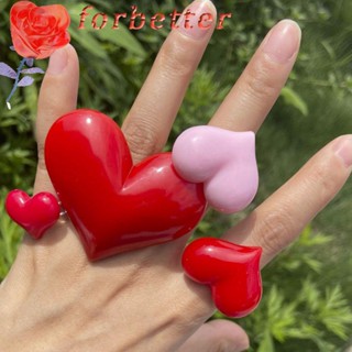 FORBETTER Women Girls Resin Rings Korean Fashion Jewelry Finger Ring Red Pink Chunky Heart Shaped Exaggerated Cute Lovely Sweet Thumb Ring
