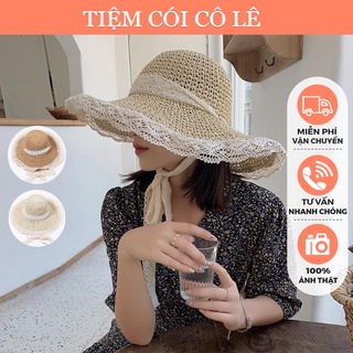 Nón cói đi biển thắt nơ ren dễ dàng gấp gọn, mũ cói vành rộng kiểu dáng vintage - Tiệm Cói Cô Lê