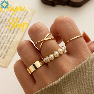 Bộ 4 Nhẫn Hở Đính Ngọc Trai Nhân Tạo Cổ Điển Cho Nữ