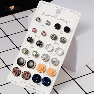 Set 12 Đôi Khuyên Tai Thẻ Tròn Đính Đá Nhiều Màu Thời Trang Cho Nữ