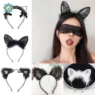 YD Băng Đô Cài Tóc Hình Tai Mèo Bằng Ren Màu Đen Đáng Yêu Cho Nữ