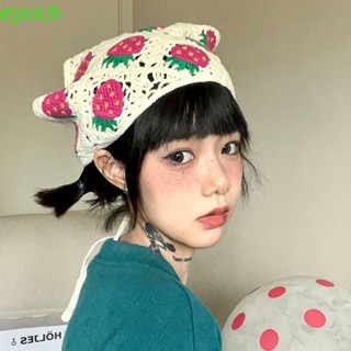 EPOCH Băng Đô Đan Móc Hình Tam Giác Họa Tiết Dâu Tây Dễ Thương