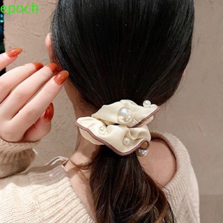 EPOCH Dây Buộc Tóc Vải Satin Co Giãn Màu Trơn Đính Hạt Ngọc Trai Đơn Giản Cho Nữ
