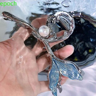 EPOCH Kẹp Tóc Đuôi Cá Bằng Hợp Kim Bạc Đính Đá Xanh Dương Ngọt Ngào Cho Nữ