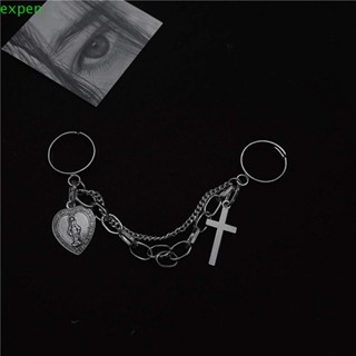 EXPEN Nhẫn Hở Họa Tiết Hình Học Phối Dây Xích Phong Cách Hip Hop Punk Cổ Điển Thời Trang Cho