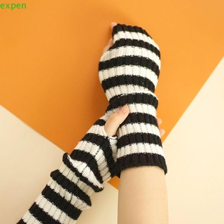 EXPEN Găng Tay Giữ Ấm Hở Ngón Họa Tiết Kẻ Sọc Dễ Thương Dùng Khi Lái Xe / Chơi Thể