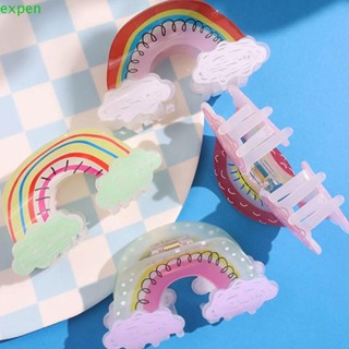 Kẹp Tóc Đuôi Ngựa Bằng Acrylic In Họa Tiết Hình Học Màu Cầu Vồng Phong Cách Hàn Quốc Cho Nữ