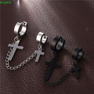 Khuyên Kẹp Vành Tai Không Xỏ Lỗ Phối Dây Xích Tua Rua Hình Thánh Giá Phong Cách Punk Cổ Điển Cho Nam