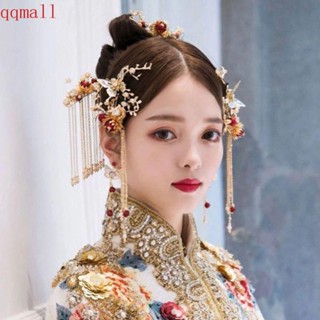 QQMALL Bộ Vương Miện Cài Tóc Đính Đá Hình Hoa & Bướm Bằng Hợp Kim Kiểu Trung Hoa Cho Cô Dâu