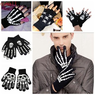Đôi găng tay hở ngón họa tiết đầu lâu màu dạ quang độc đáo thích hợp cho halloween