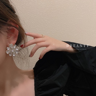Bông Tai Mạ Bạc Hình Bông Hoa Đính Kim Cương & Ngọc Trai Giả Kiểu Pháp